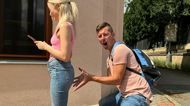 Married MILF Stracy Stone Cheats with Her Stepson Falco While Hubby Is Helplessly Locked Out on the Balcony